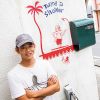茅ヶ崎が地元のAMBE氏。その印象を聞いてみると、「昔から変わらない居心地のいい場所」と答えてくれた。その“居心地のいい場所”で現在も精力的に活動をしている。AMBE氏の作品は、主に茅ヶ崎を中心とした湘南エリアのカフェや不動産屋などのウォールアート、地元のお店とのコラボアイテム、AMBE氏自身の個展などで見られる。茅ヶ崎商店会のサザン神社に行けば、えぼし岩を模したユニークなペイントも見つかるだろう。地元を題材にしたイラストもAMBE作品最大の特徴だ。