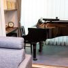 リビングに通されてまず目を奪われるのが一段下がったスペースにあるピアノ。ピアノ講師である奥様の「ピアノ部屋と居住スペースを分けたい」という要望に応じて設けられたスペースで、演奏する時などは引き戸を閉めて一つの独立した部屋として使っているという。またご主人の「どこから見ても緑が見える」という要望にも、部屋の両側にバランスよく窓を配置することで応えた。他にも吹き抜けの階段や、黒く塗られたスタイリッシュな壁など見どころやこだわりのポイントはたくさん。注文住宅だからこその魅了的な空間が広がっている。