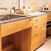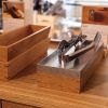 展示されているのは、ホワイトオークのバックカウンター、クルミのダイニングテーブルセット、そしてホワイトオークと水磨きの御影石を使ったキッチン。「フリーハンドイマイのキッチンと言うと、ステンレスと木のイメージが強いと思うのですが、あえて少し違う組み合わせで作ったものを展示しています」とイマイさん。御影石は艶消しすることでマットな質感となり、落ち着いた雰囲気を醸し出しています。天然石には短所もあるけれど、使い込むことで生まれる風合いを見せたいと誕生したキッチンは、ステンレスとはまた違った表情を見せてくれます。気になる方はぜひ湘南T-SITEに足を運んでみて下さいね。