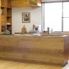 今回新しくなったのはキッチンとバックカウンター。どちらも先日開催された湘南T-SITEの「料理道具市」に展示されていたもので、ホワイトオークで作られています。リニューアルにあたり床も無垢材に変更し、キッチン周りの雰囲気や暮らし方をよりイメージしやすくなったのでは、と代表のイマイさんは話します。こちらでオーダーする方は手触りや質感を重視し、木のあたたかみを活かした家を建てる方も多いとか。「木材は人間同様にちゃんと年をとります。使っていくうちに味が増していく、愛着がわくものを好まれる方にはぴったりの素材だと思います。古くなってもそれ相応のくたびれ方、味わいが出てくるのが木の魅力ですね」。