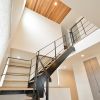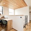 白い壁紙と木目の対比が美しく、どこか温もりを感じるS邸。鉄骨階段が空間のスパイスとなり、北欧の家のようなモダンさを添えている。Sさん夫妻は「Instagramで偶然R+houseの投稿を見たことがきっかけとなり、お願いすることにしました。 私たちが持っていたイメージは『吹き抜けがあって明るく、冬でも暖かいカフェ風の家』。家づくりを左右する要望は全部で6つほどありましたが、全て盛り込んでもらいました」と振り返る。大容量のクローゼットやお洒落に配置されたタイルが印象的な手洗い場も、要望から生まれたお気に入りポイントだという。特に手洗い場はご主人が自らタイルのパターンやボウルを選んだというこだわりの場所。