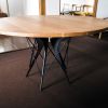 「あれやこれやと悩みに悩み、まずは自分の好きなように作ってみよう、そう思いました。円卓で足がぶつからないように、みなさんが居心地よく座って過ごすことができるテーブルにしようと。自転車が好きなので、パイプの構造は競技自転車の仕組みを取り入れて剛性を出しています。あまり武骨な印象にはしたくなかったので、鉄の質実剛健な強さと木の柔らかさを中和させながら、強度の面など、本当に試行錯誤しながら作り上げました。」