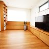 そういう諸々のものをリビングに置くことも少なくなり、そういう機器自体少なくなってきています。パソコンは決まった場所で使うことなく、無線LANや軽量化によって家のどこでも使えるものとなったので、使う場所ではなく、しまうだけの場所があればよくなり、FAXを持つ家庭も少なくなってきました。CDやレコードをたくさんお持ちのかたも少なくなり、AV機器もとてもコンパクトで少数台で迫力ある音や映像が楽しめる時代になりました。以前お客様のなかでも耳にしたのは、プリンタ収納を作ってもプリンタをしまう必要が無くなってしまったり、スピーカーを置けるスペースを確保しておいたけれど、小型で高性能のものを使い始めたらスペースを持て余してしまったということを聞いたことがありました。お子さんがいらっしゃるご家庭ではまだお子さんが小さなうちに考える収納は、どうしても散らかりやすく増えやすいお子さんのものを主体に考えることが多くなります。玩具や学習文具、本、ゲーム機などなど。でも、子供は中学校に入るくらいになると、リビングで過ごすよりも自分の部屋で過ごすことが多くなるご家庭が多いです。